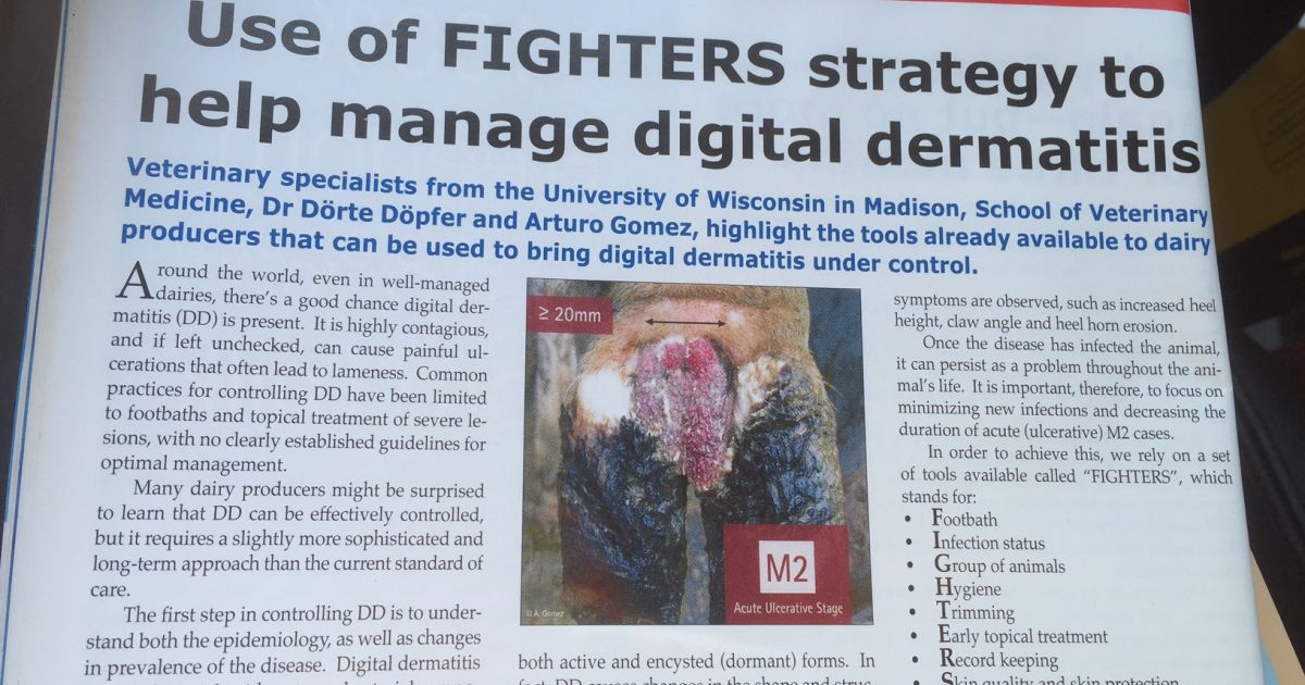 - Rodriguez-Lainz, Alfonso; Melendez-Retamal, Pedro; Hird, David W; Read, Deryck H; Walker, Richard L (October 1999). "Farm- and host-level risk factors for papillomatous digital dermatitis in Chilean dairy cattle". Preventive Veterinary Medicine. 42 (2): 87–97. doi:10.1016/S0167-5877(99)00067-7. PMID 10551428.87-97&rft.date=1999-10&rft_id=info:doi/10.1016/S0167-5877(99)00067-7&rft_id=info:pmid/10551428&rft.aulast=Rodriguez-Lainz&rft.aufirst=Alfonso&rft.au=Melendez-Retamal, Pedro&rft.au=Hird, David W&rft.au=Read, Deryck H&rft.au=Walker, Richard L&rfr_id=info:sid/en.wikipedia.org:Digital dermatitis">